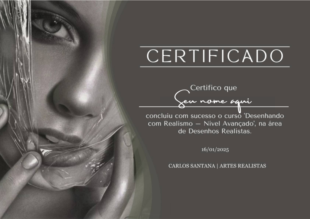 O Desenhando com Realismo é um curso completo que vai desde o básico até o nível avançado, com aulas passo a passo e acesso vitalício.